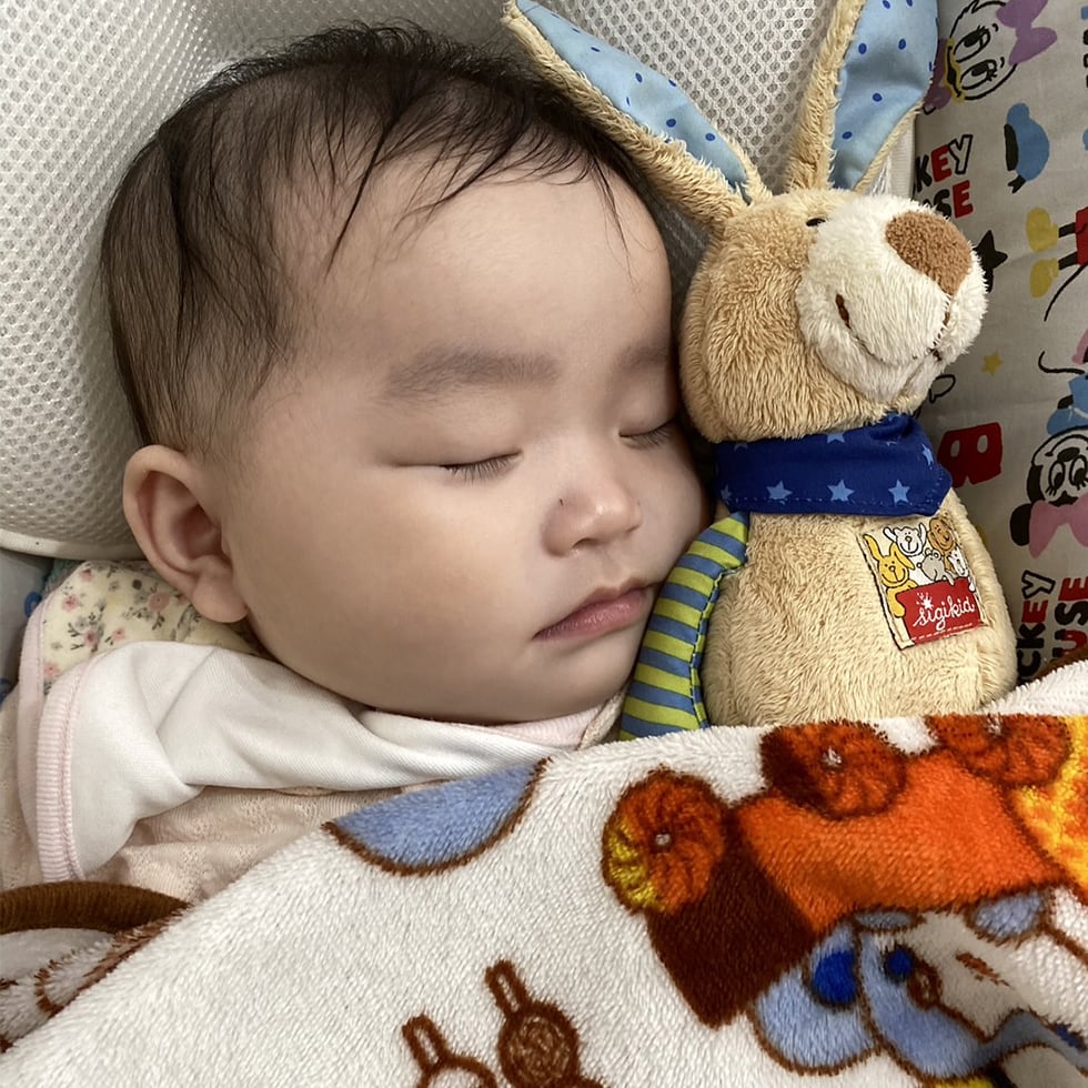 「6ヶ月の下の孫は、ミルクも飲んで、おむつも替えて、でも眠くて泣き止まない…そんな時にシギキッド社のオルゴールを聞かせながら抱っこしてゆらゆらすると、すーっと寝てくれるんです。新生児の頃から聞かせていたから、安心するのかな」