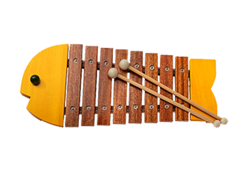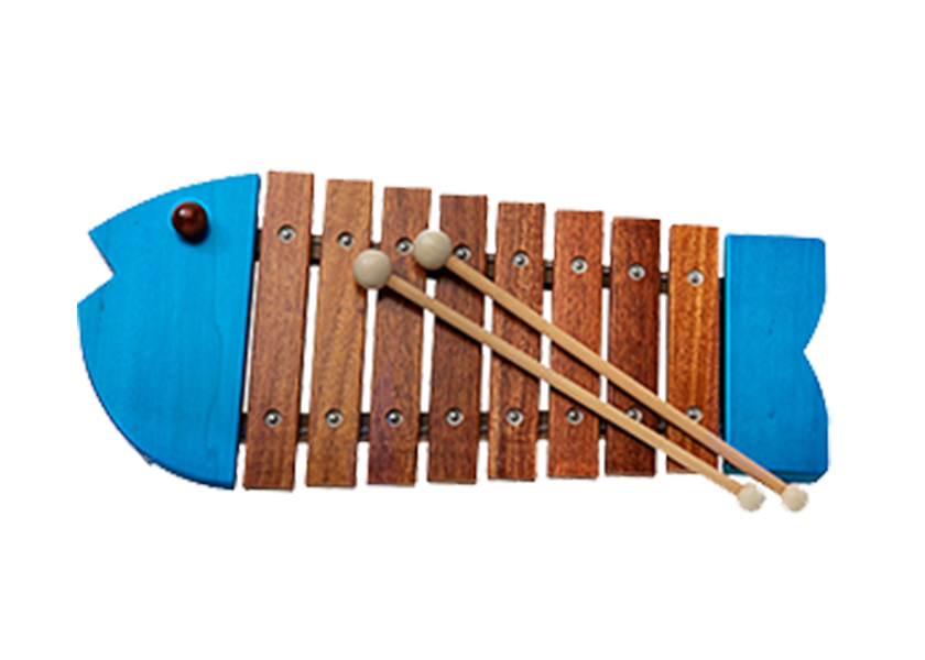 おさかなシロフォン、開発当時の仮称は「雑魚シロフォン」でした。鍵盤がまるでさかなの骨みたいじゃない?さかなの骨に、カルシウムが豊富に含まれているように、この木琴が奏でる音も、子どもたちの栄養になりますように!というコンセプトで開発しました。ちなみに顔の形を変えたのは、青色=青魚ってことで「サバ」、黄色は「タイ」をモチーフにしたからなんです。